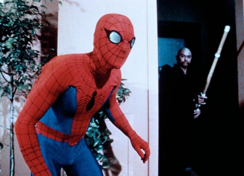 Tout cela contraint évidemment le scénario. Déjà que c’est compliqué de gérer les effets spéciaux censés donner vie à l’Araignée, pas question en plus de le voir se foutre sur la gueule avec l’un des supers vilains habitués de la BD, du genre Bouffon vert, Vautour, homme sable, Lézard… Le seul ennemi que va rencontrer Peter est donc un gangster de seconde zone qui ressemble à un pilier de PMU et possède un badge lui permettant de contrôler les esprits – belle pirouette scénaristique pour éviter les complications techniques et les frais-